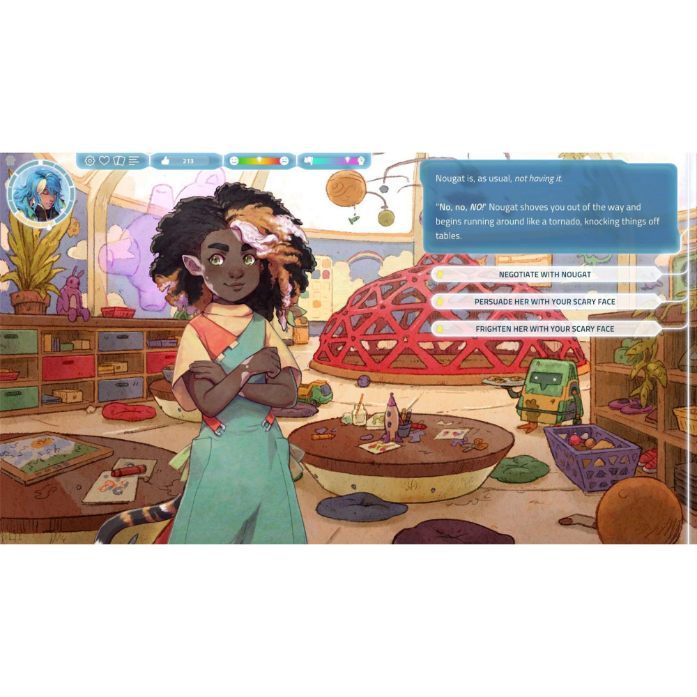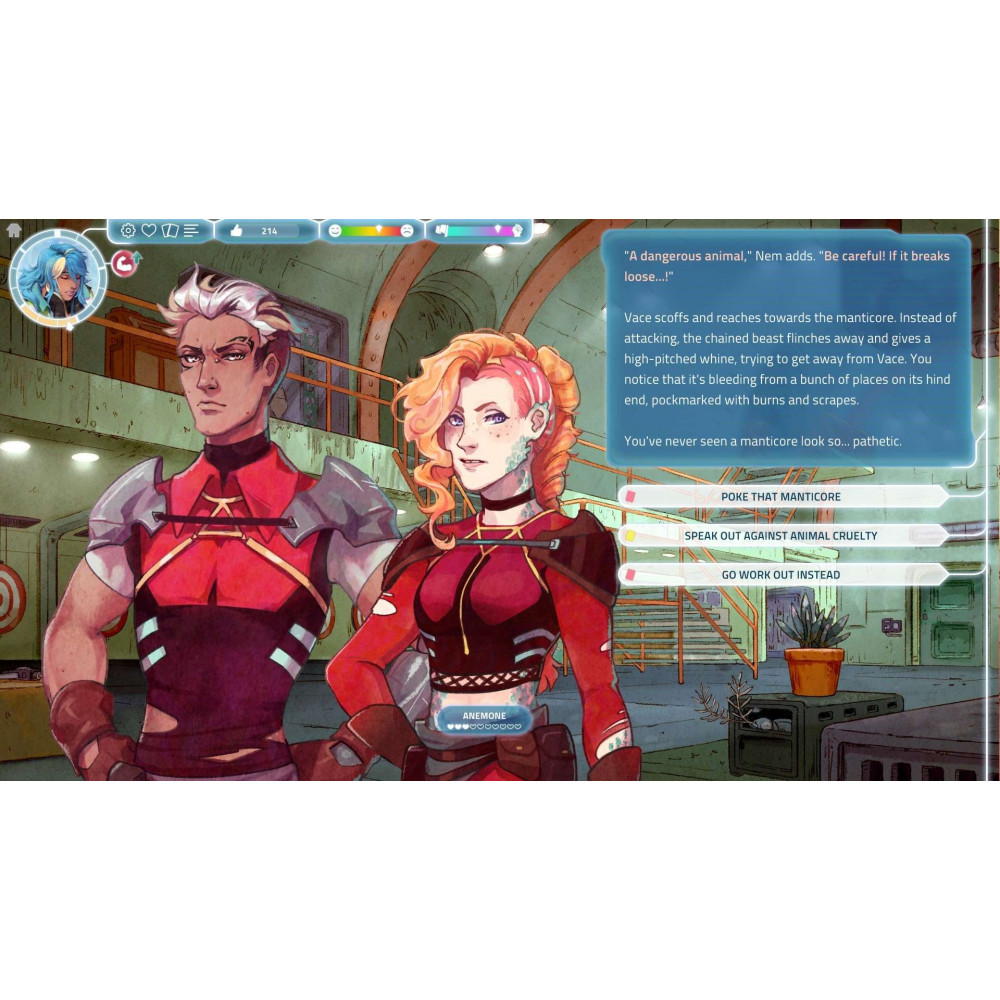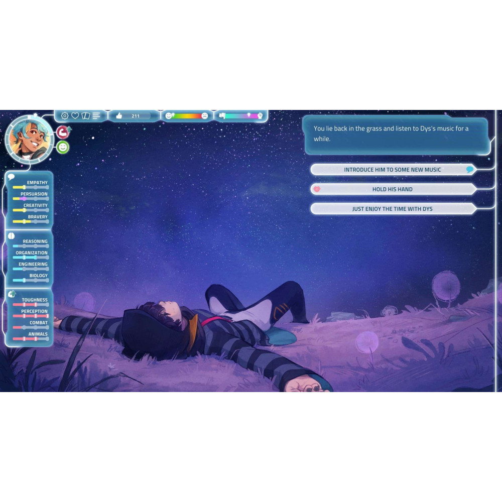 | Жанры | Будущее, Визуальная новелла, Выбери себе приключение, Выживание, Глубокий сюжет, Интерактивная литература, Карточная игра, Коллекционная карточная игра, ЛГБТК+, Менеджмент, Научная фантастика, Несколько концовок, Построение колоды, Пошаговая, Решения с последствиями, Рисованная графика, Ролевая игра, Симулятор, Симулятор жизни, Симулятор свиданий |
